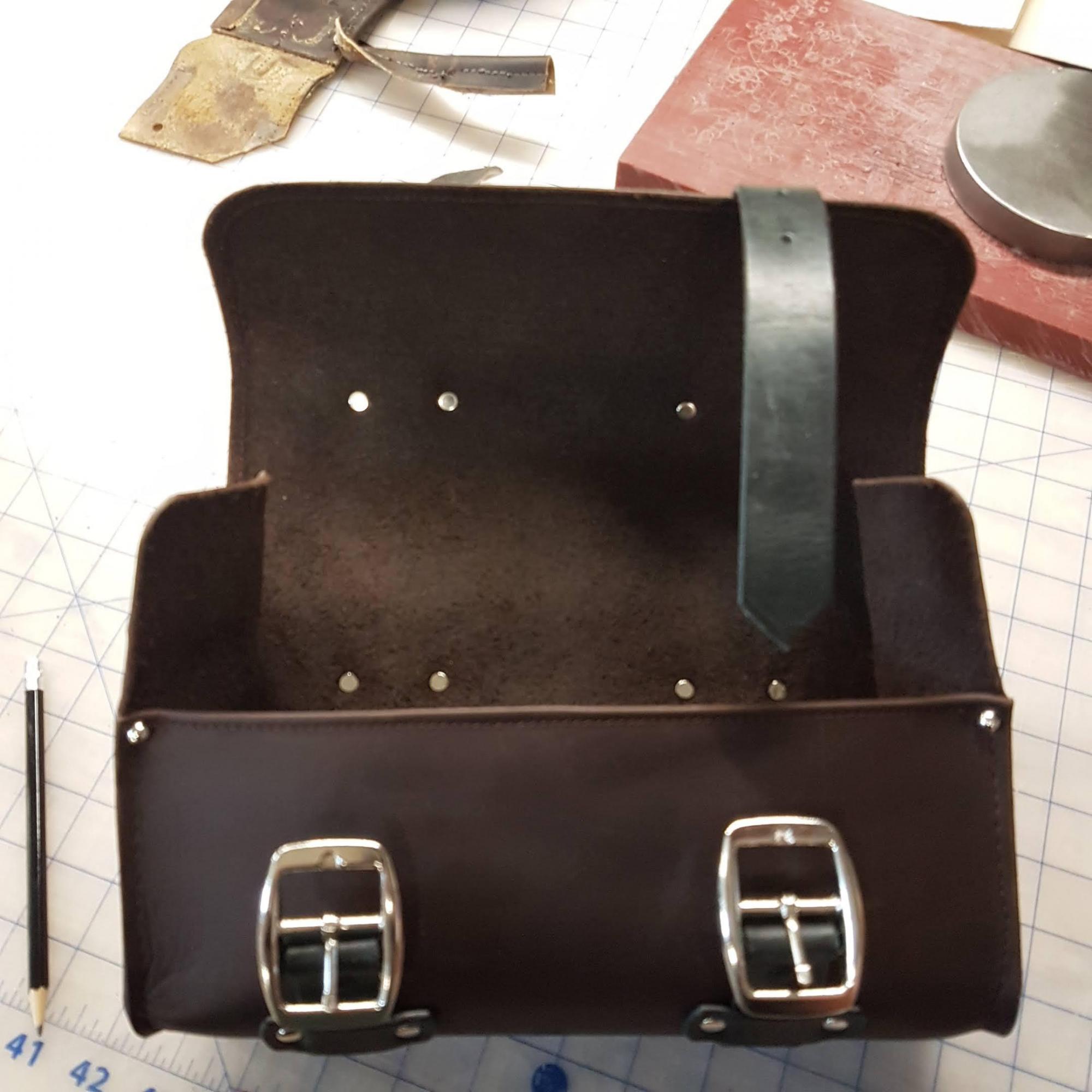 Are You Tired Of Your Tool Bag Breaking Down. With This Quick Access Tool Bag This Will Allow You To Get Your Tools Quicker. Be The Quickest To Get Your Bike Back On The Road. This Durable Custom Hand Made Tool Bag Are Made With A Full Grain Leather That Should Hold Up For Many Years.
