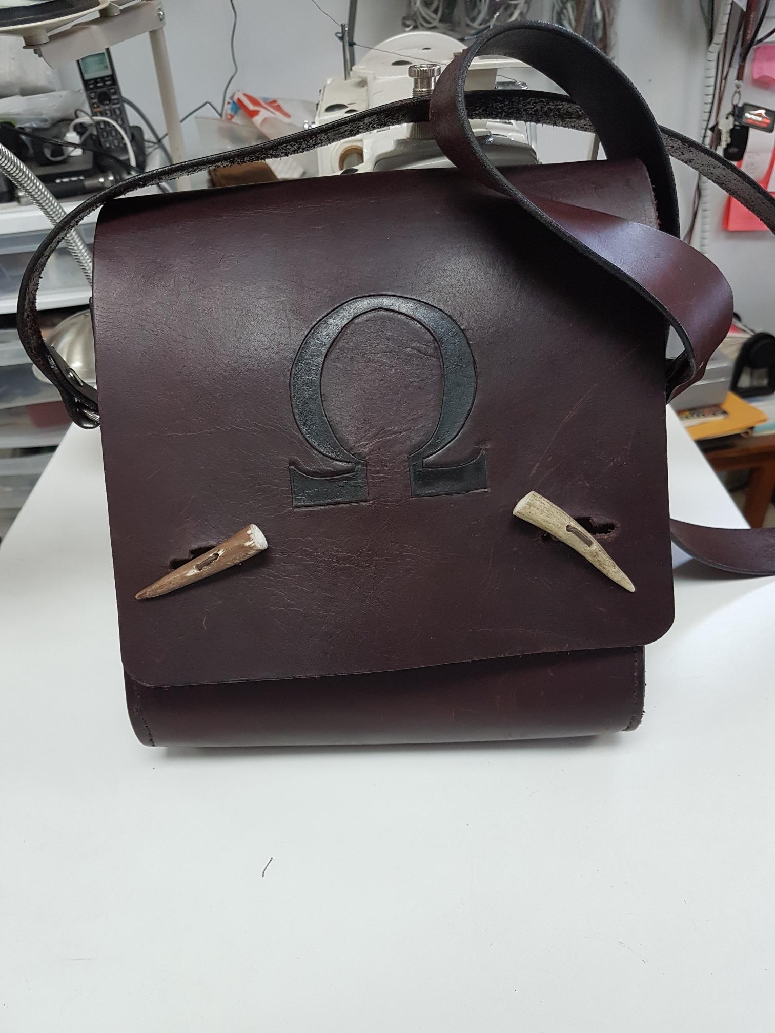 Mail bag medium ox blood colour with antler clasps