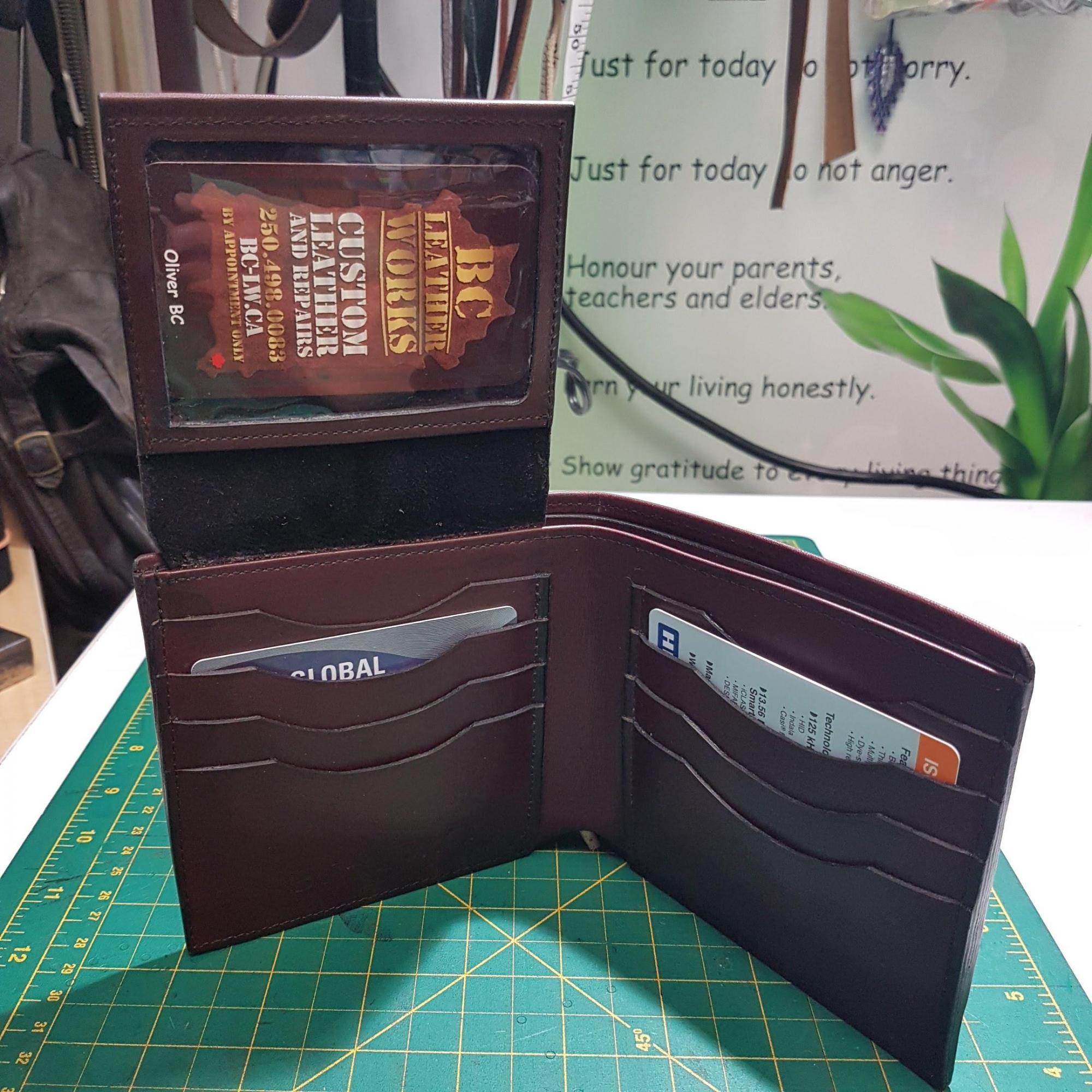 Wallets, Custom, Full Grain Leather, Hand tooled, Hand made in the Okanagan, Oliver, B.C., Canada.